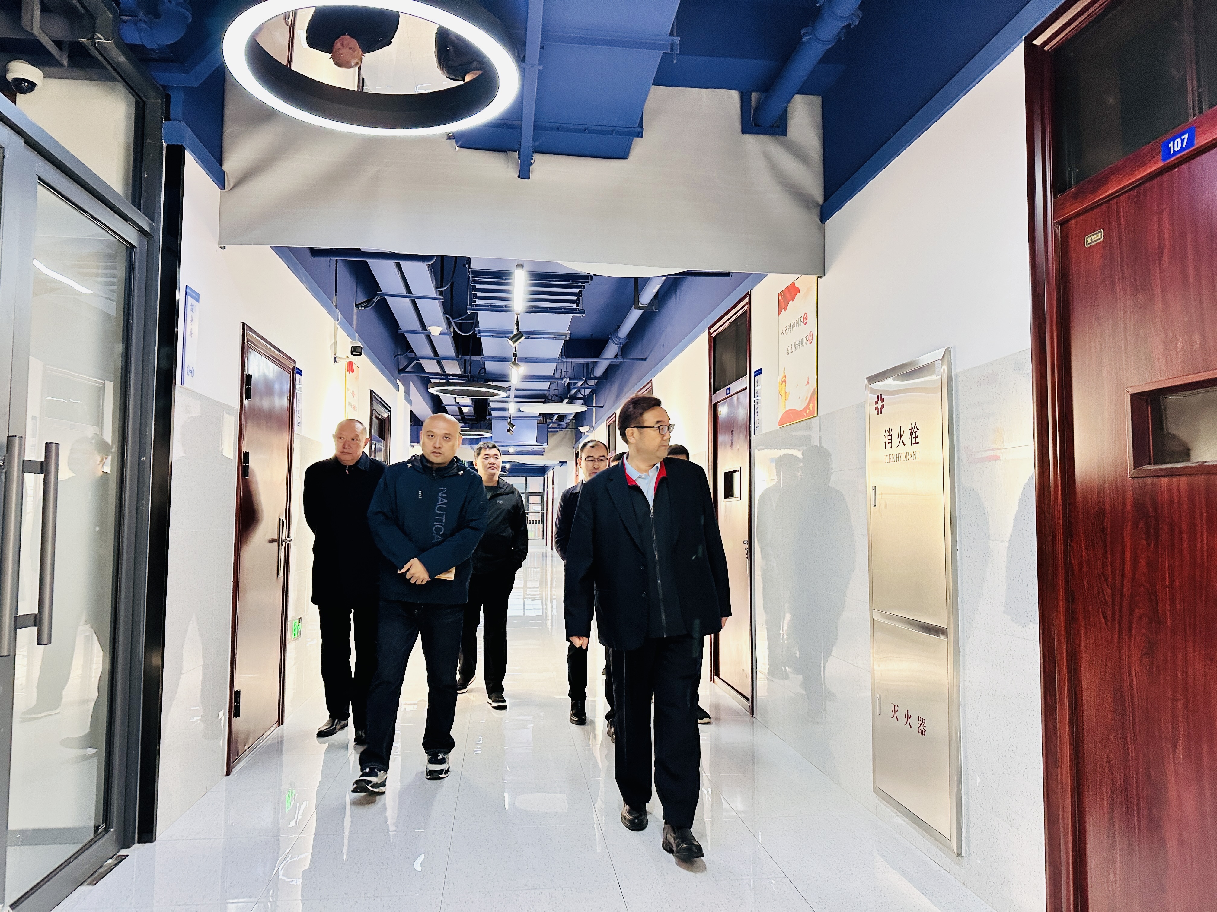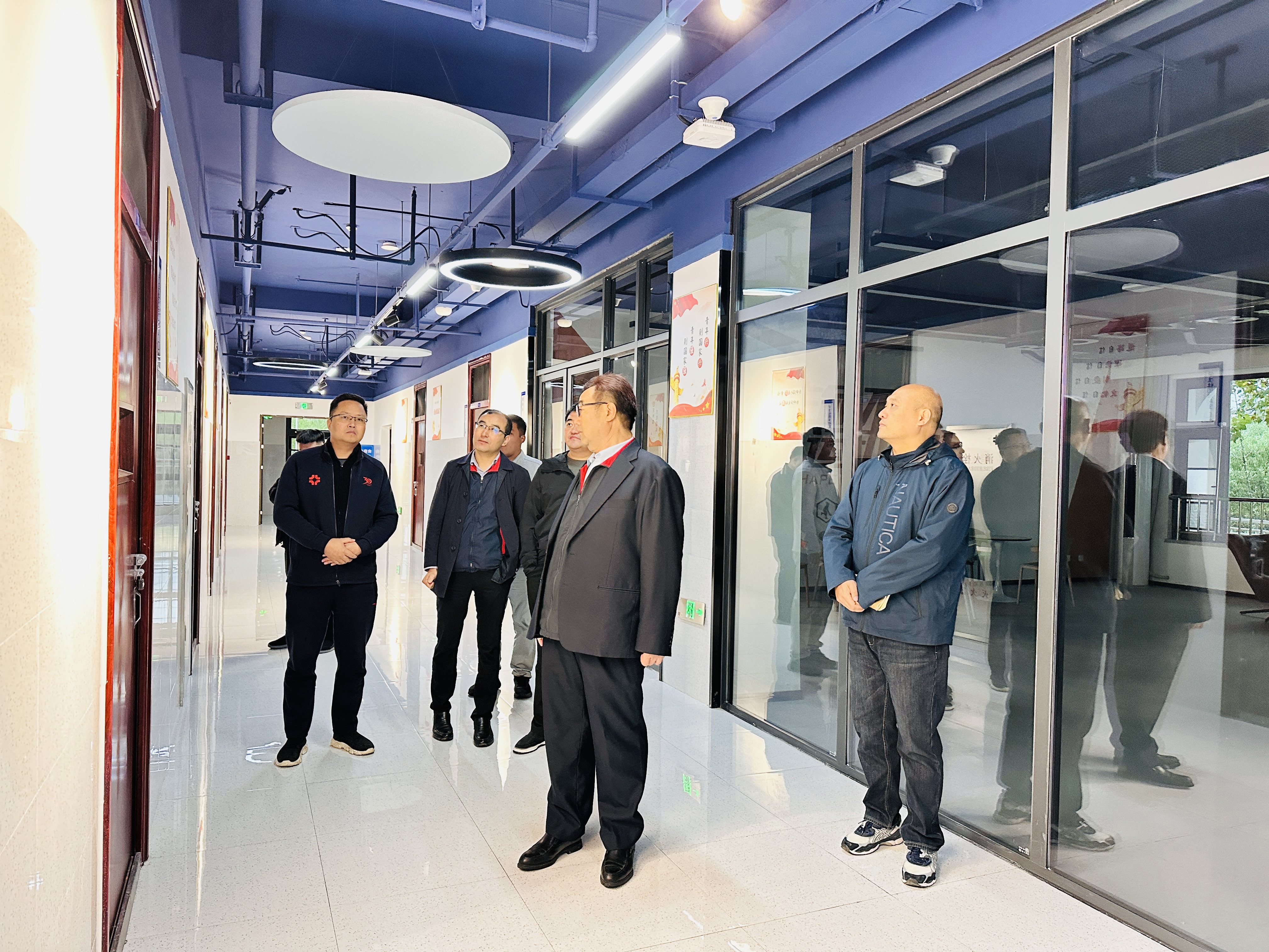 王新奇董事长一行实地走访了教学楼、学生宿舍、食堂等校园多个区域,细致查看了教学设施运行、生活服务保障及校园环境建设情况,并听取了校区工作汇报。他对校区各项工作平稳运行及取得的阶段性成效给予了高度肯定。