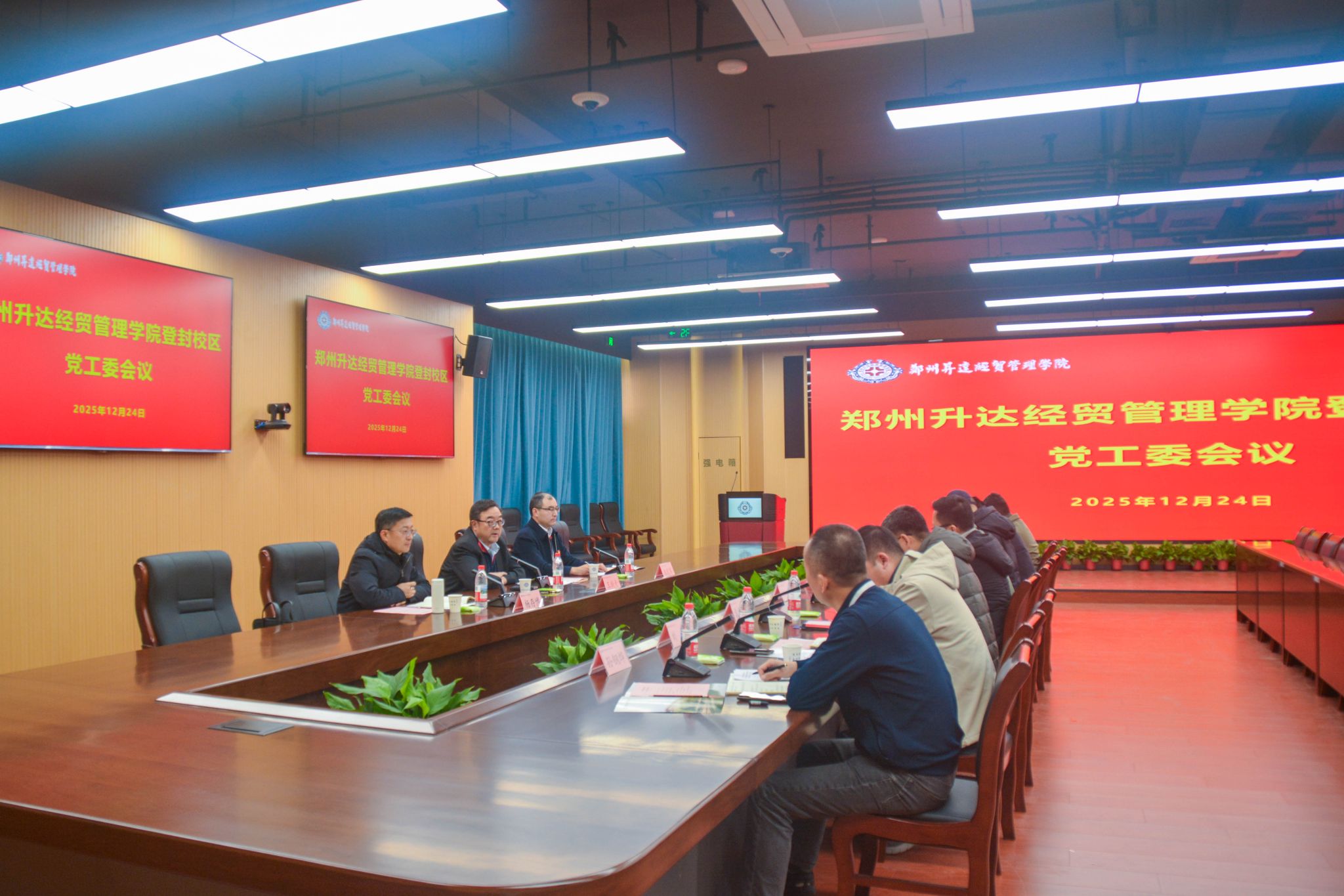 12月24日,登封校区党工委在多功能会议室召开会议。董事长王新奇博士、董事会办公室主任杨存博出席会议,登封校区全体党工委委员、各职能部门主管及副主管参加会议,会议由党工委书记沈定军主持。