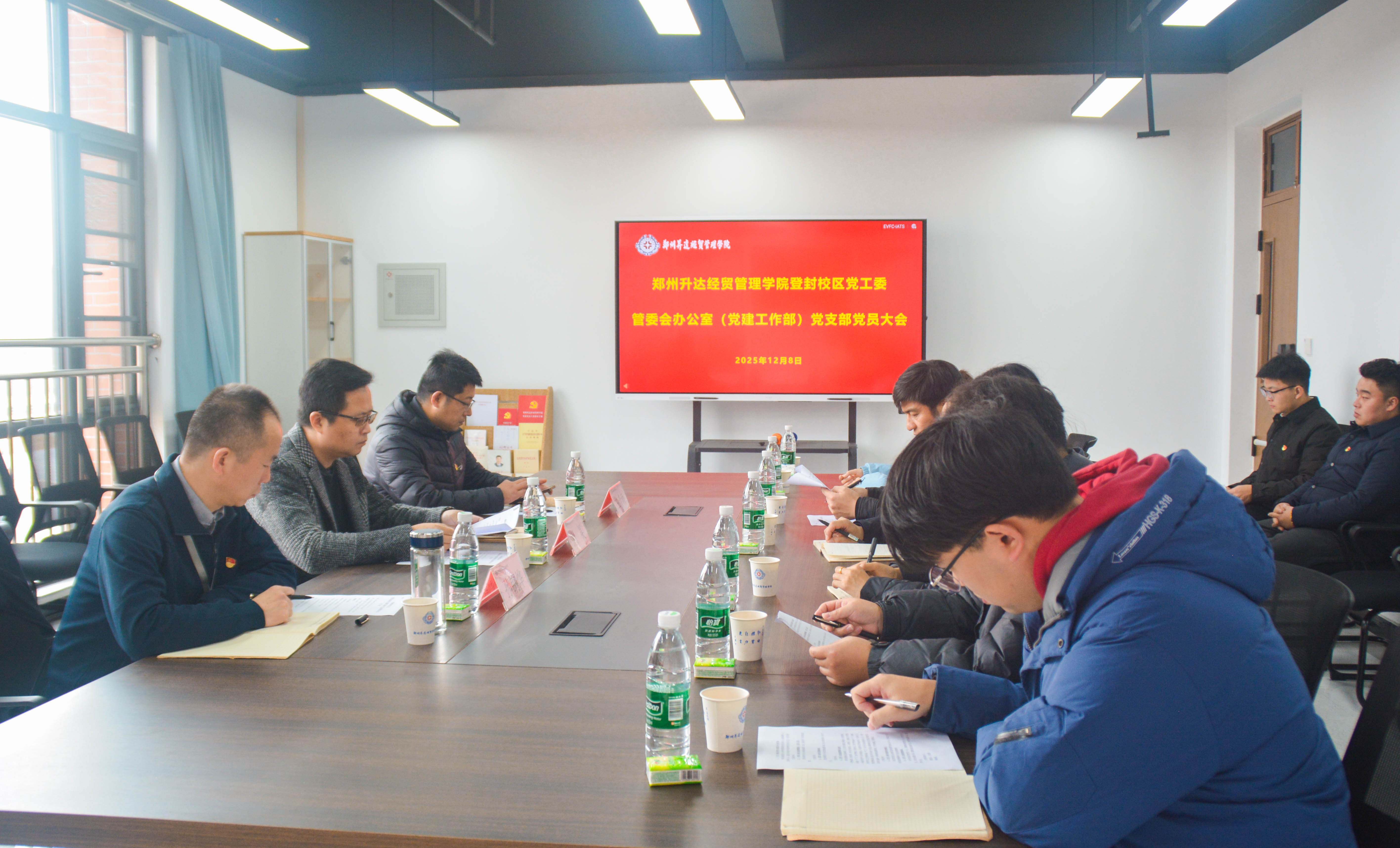 12 月 8 日上午,登封校区工作委员会管委会办公室(党建工作部)党支部党员大会在书望大楼403 党员活动中心会议室顺利召开。党支部全体党员参加会议,会议由管委会办公室主任、党建工作部部长刘昊同志主持。